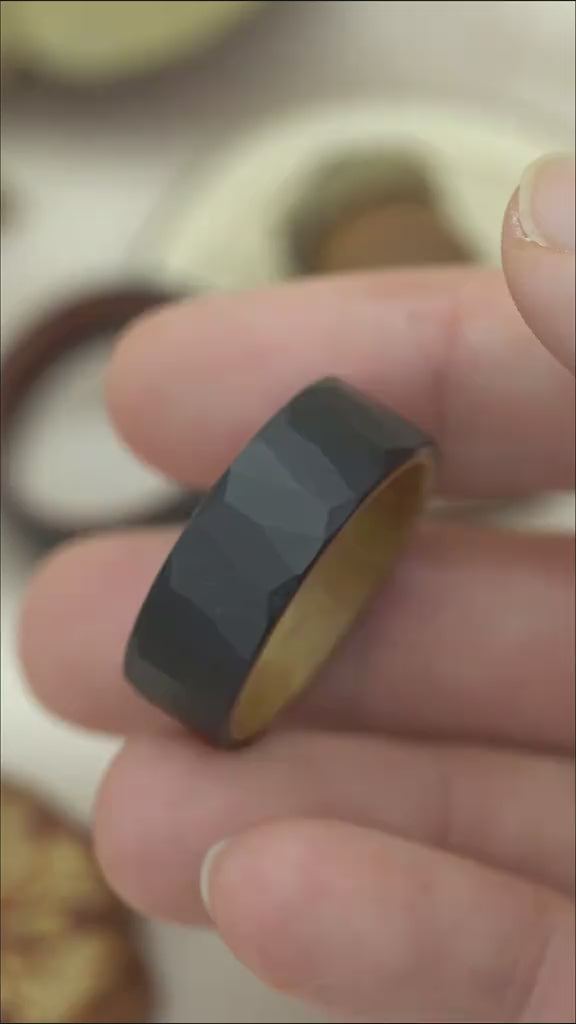8mm Hammered Tungsten Carbide Rings Rose Gold Couple Wedding Bands